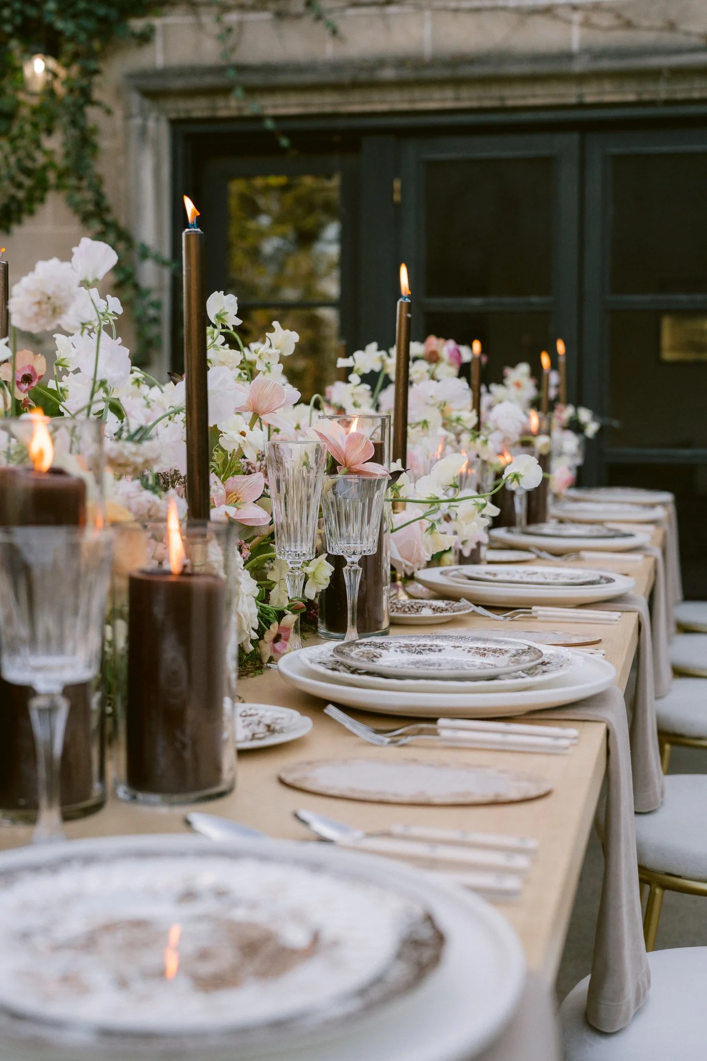 Inspired by the budding grounds of Greencrest Manor, Stephanie Abbitt leaned into the tones of spring to design this beautiful editorial. Floral elements from the bride’s Berta gown to the invitation suite and bridal bouquet were so effortlessly cohesive. Guests were treated to custom candle favors from Applewood Candle Company.