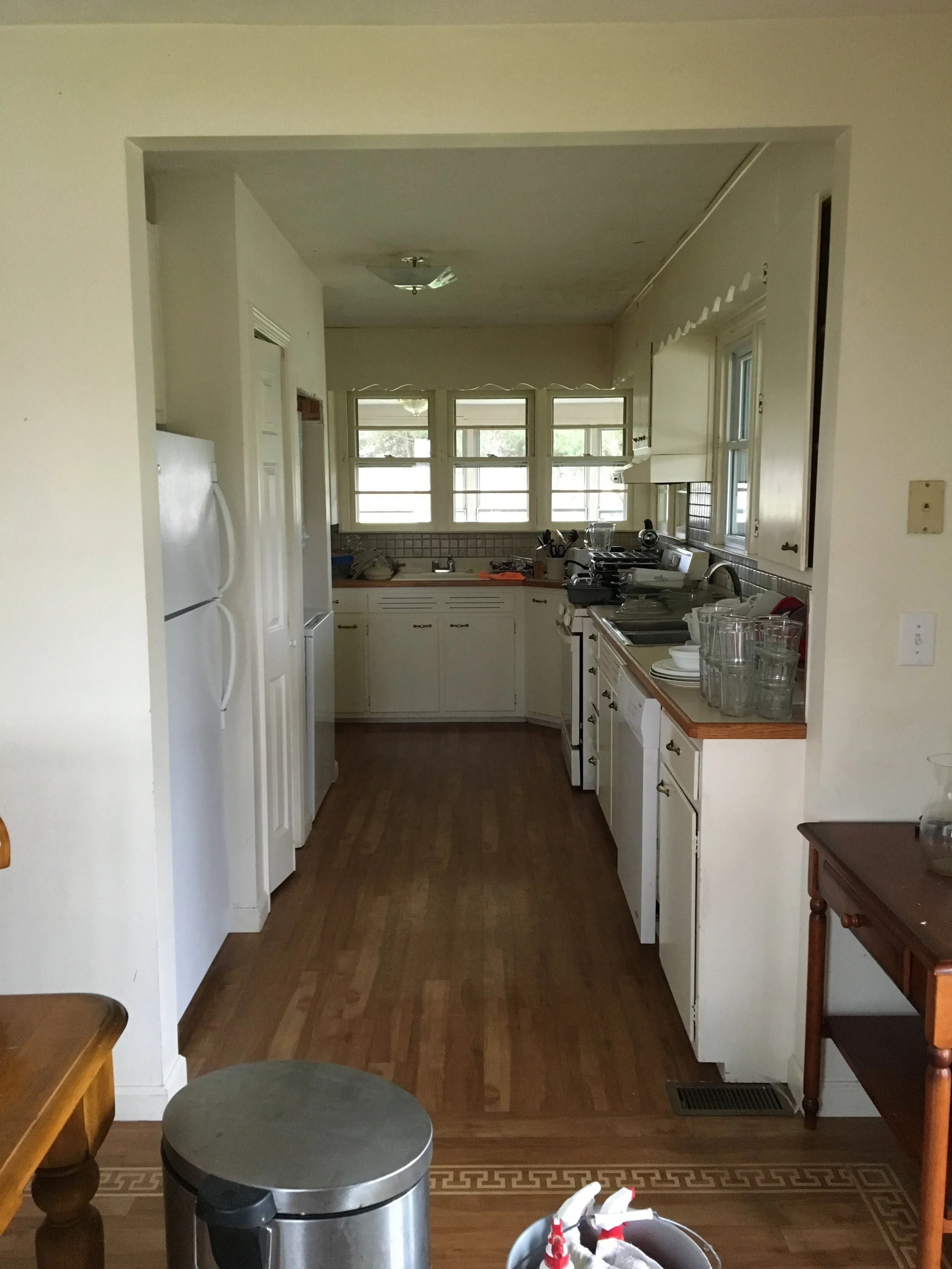 This is from the dining room looking into the galley kitchen which also included the washer and dryer. Also, the quality of the before pictures isn't so great because I just snapped them with my iPhone because I knew I would want to remember what it used to look like. Sorry for the classic horrible before pictures and (hopefully) great after pictures...